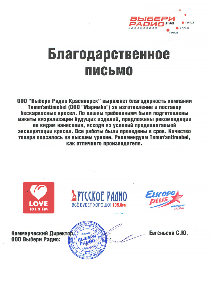 Отзыв о компании таммантимебель от компании МадменОтзыв о работе с нами Администрации КрасноярскаОтзыв о таммантимебель от компании Две Семьи